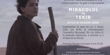 Joi, 3 martie 2016, ora 19:30, la cinematograful Cinema Pro (Str. Ion Ghica, nr.3, București) are loc premiera de gală a lungmetrajului „Miracolul din Tekir”,...