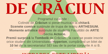 Facultatea de Științe Exacte și Inginerești din cadrul Universității Hyperion organizează PETRECEREA DE CRĂCIUN. Evenimentul este un spectacol umoristic și de teatru prezentat de trupa Arthesium și are...