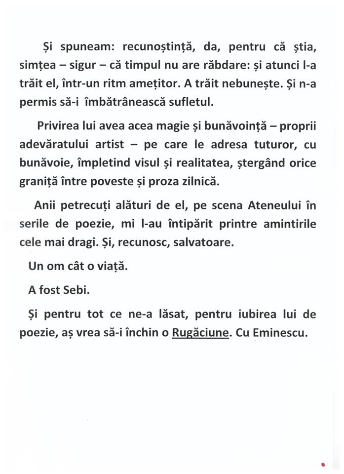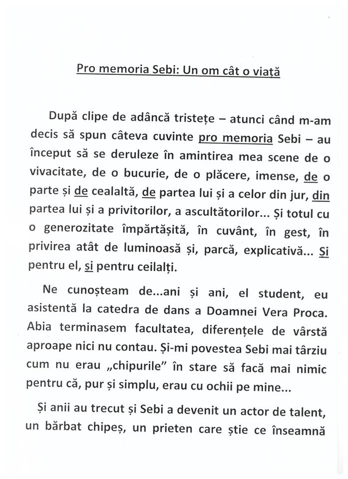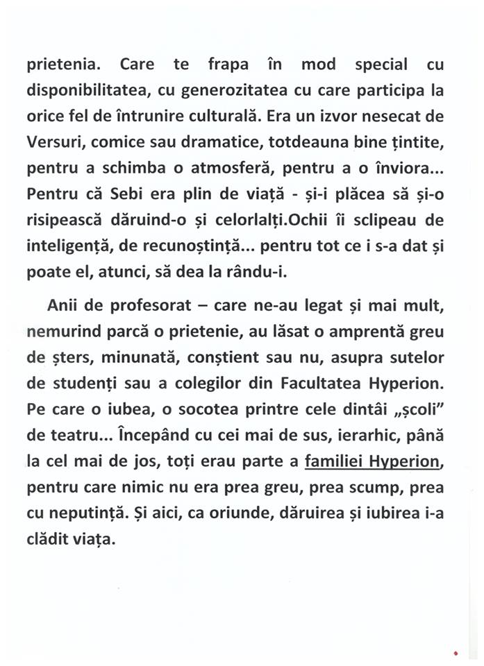 Printre participanți se numără și studenți ai Facultății de Arte, Hyperion, instituție în cadrul căreia marele actor Eusebiu Ștefănescu a predat.