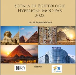 În perioada 26 – 29 septembrie, între orele 11.00 – 17.00, Universitatea Hyperion din București va organiza și găzdui online, pe Google Meet, Școala de Egiptologie Hyperion-IMOC-PAS 2022 (26 – 29 septembrie), în colaborare cu Institutul Polonez al Culturilor Mediteraneene și Orientale (IMOC-PAS).