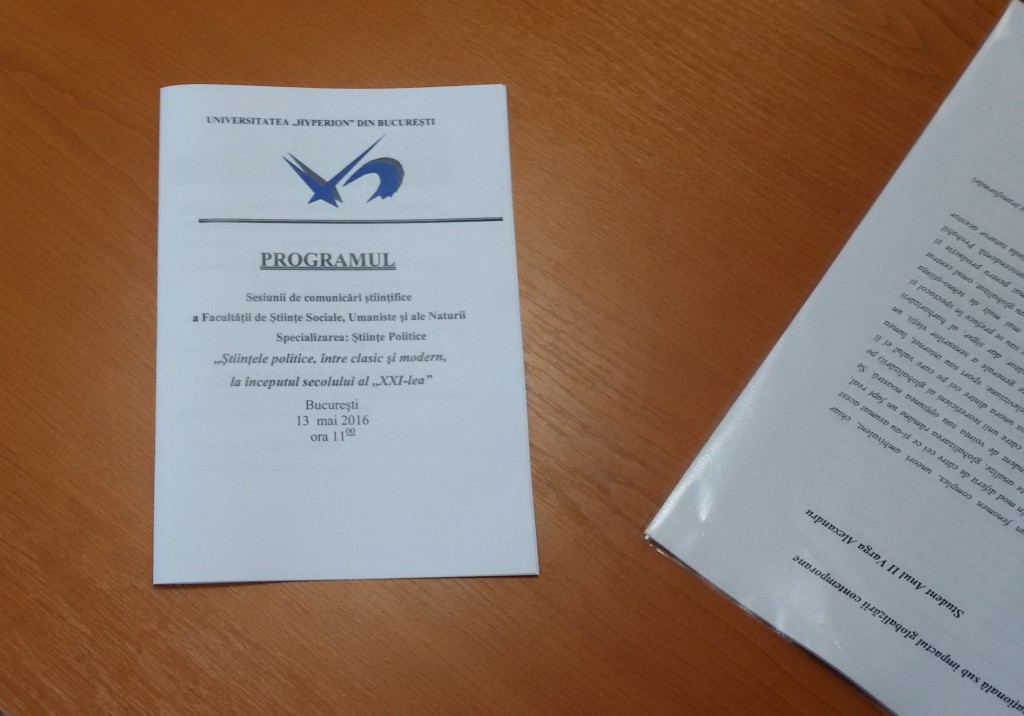 Facultatea de Științe Sociale, Umaniste și ale Naturii, specializarea Științe Politice, a organizat vineri, 13 mai 2016, începând cu ora 11:00, Sesiunea de comunicări științifice – „Ştiinţele politice, între clasic şi modern, la începutul secolului al ,,XXI-lea”.