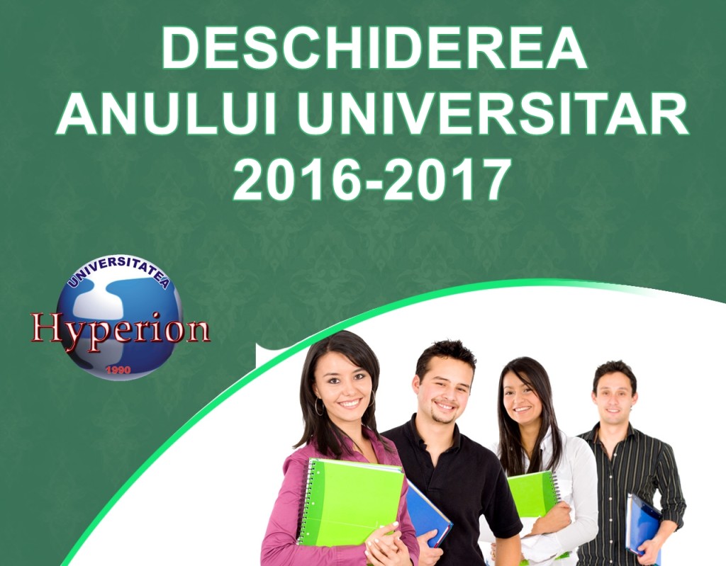Festivitatea de deschidere a anului universitar 2016-2017, la nivelul Universităţii Hyperion, va avea loc luni, 3 octombrie 2016, ora 12:00, în Amfiteatrul 3 (etaj 3, corpul B, str. Popa Nan, nr. 90-92).